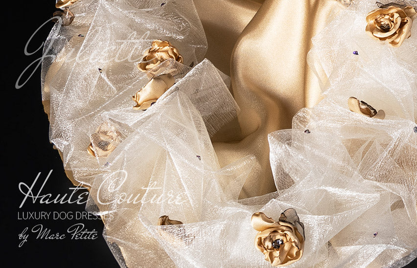 Haute Couture Gold Dog Dress for toy, small & middle breeds. For large breeds, contact us.