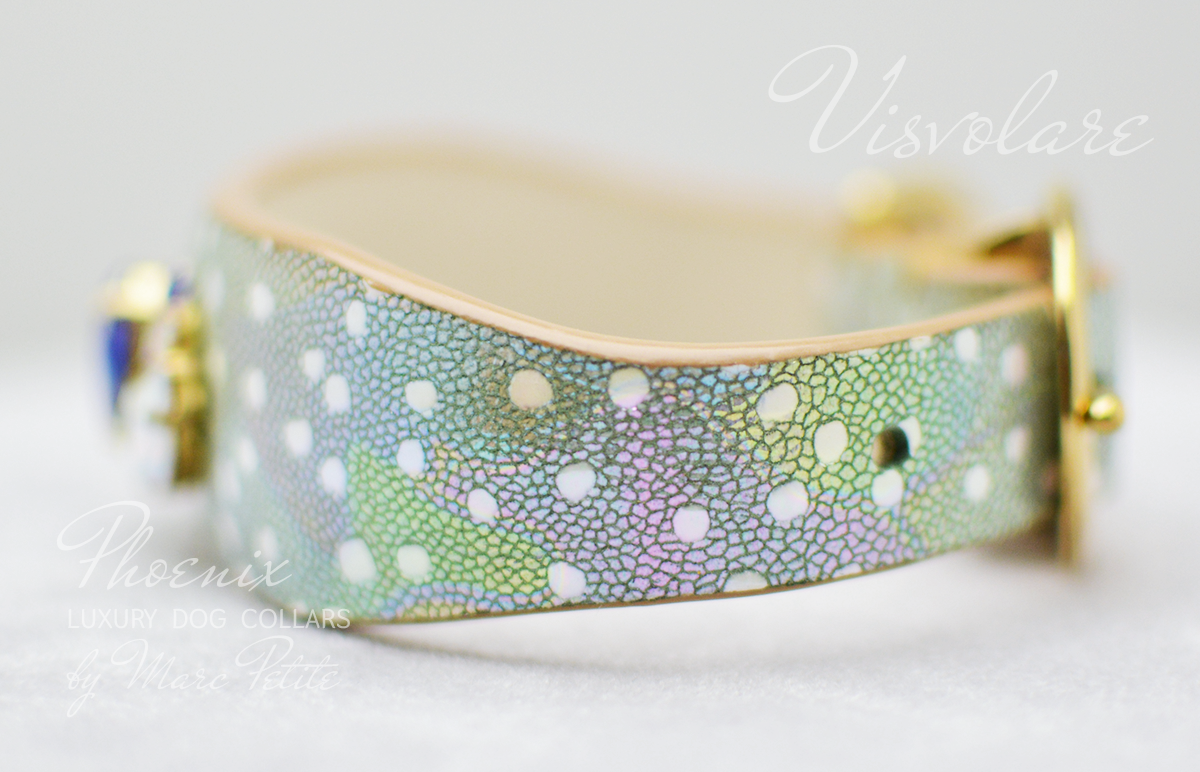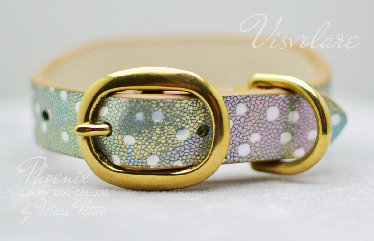 The only thing cuter than a beautiful dog is a beautiful dog adorned with an interesting collar. For all those beautiful dog owners out there, this collar is for you. This piece is truly eye-catching. The goatskin's holographic designs perfectly match the Swarovski crystals set, and the dotted pattern adds an artistic touch to the entire dog collar. This collar is particularly suitable for small and extra-small breeds.