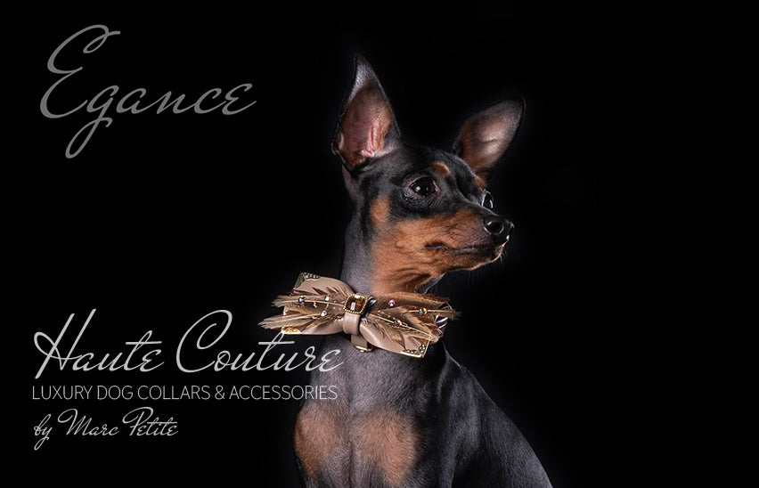 The combination of soft golden leather with Swarovski crystals and feathers magically compliments any four-legged creature. Minutes ago, it was a naughty boy (or a girl, why not?) rubbing against your leg, but now it is a swanky society doggie that proudly wears an elegant golden leather bow-tie! Woohoo!