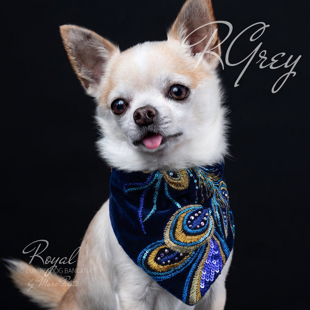 This luxury dog bandana is crafted with premium materials and features Swarovski crystals for an elegant sparkle. Personalize it with your pup's name or initials to showcase their unique style. The soft, high-quality fabric ensures comfort while adding a touch of haute couture to any outfit. Available in XS (40cm / 15 inches) and S (50cm / 19 inches) to fit your furry friend perfectly. Make your dog stand out with this sophisticated accessory that combines glamour and comfort.