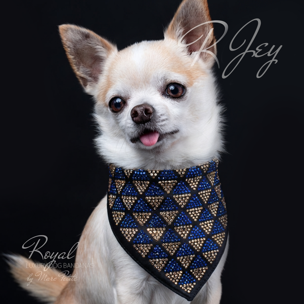 This luxury dog bandana is crafted with premium materials and features Swarovski crystals for an elegant sparkle. Personalize it with your pup's name or initials to showcase their unique style. The soft, high-quality fabric ensures comfort while adding a touch of haute couture to any outfit. Available in XS (40cm / 15 inches) and S (50cm / 19 inches) to fit your furry friend perfectly. Make your dog stand out with this sophisticated accessory that combines glamour and comfort.
