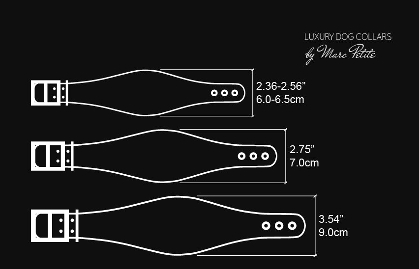 All our products may be adjusted to your breed and/or customized (leather, decor). As well you can request matching accessories: leashes, braceltes, poo bags, etc.
