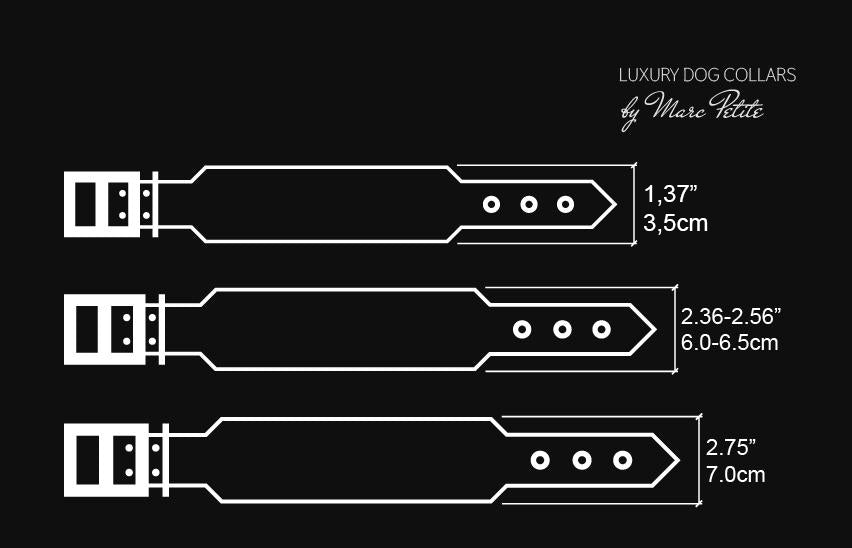 首輪のサイズ:ご要望に応じて。チェックアウト時に犬の首回りと犬種をご指定ください。