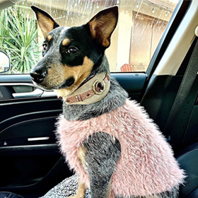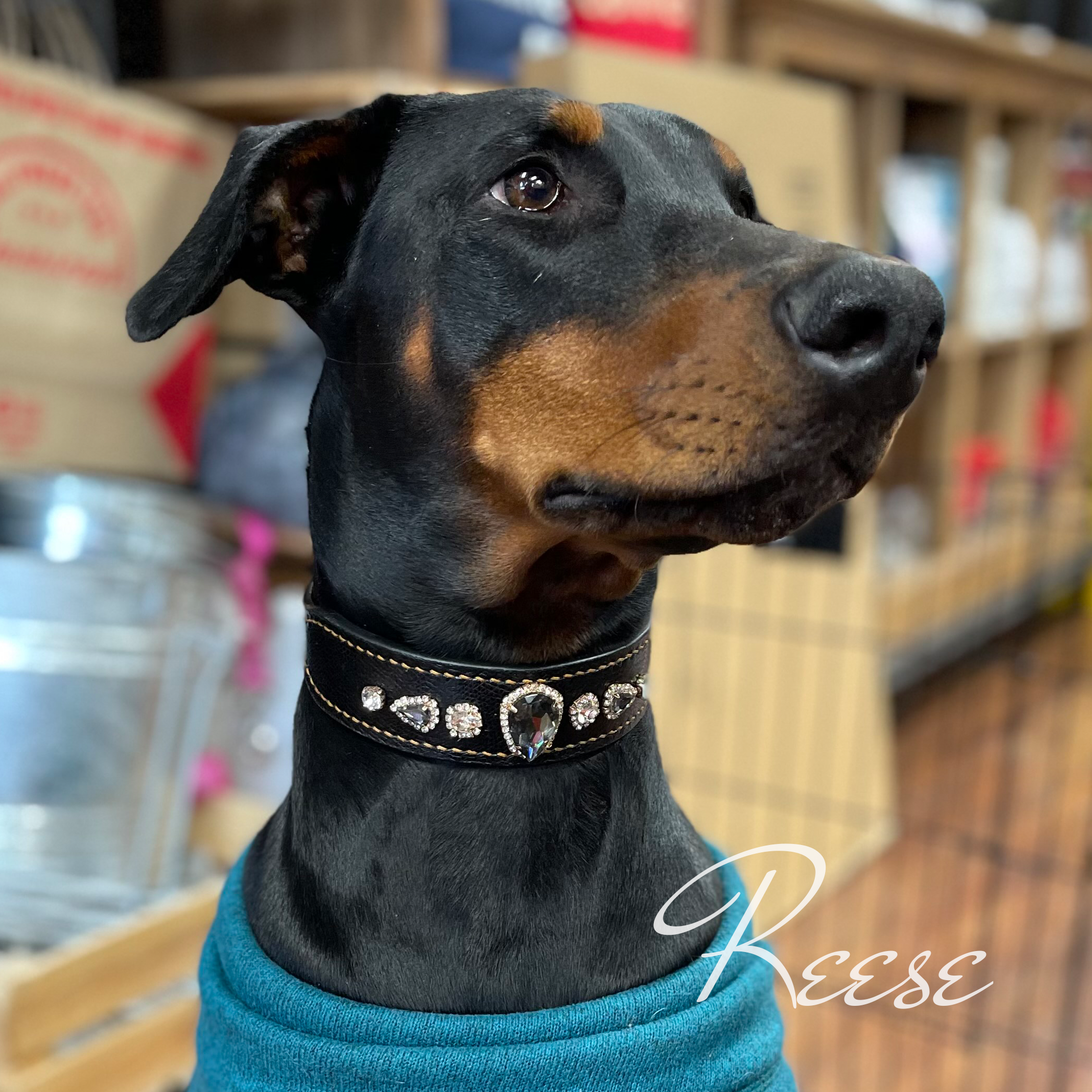 All our products may be adjusted to your breed and/or customized (leather, decor). As well you can request matching accessories: leashes, braceltes, poo bags, etc.