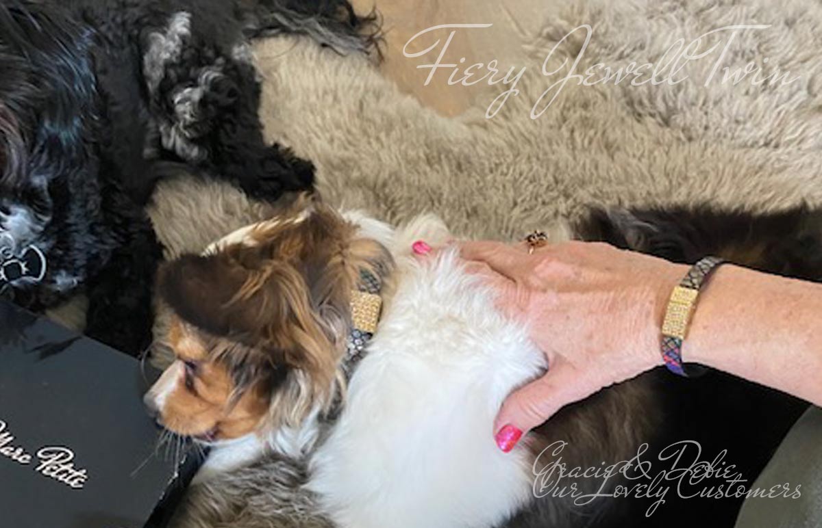 All our products may be adjusted to your breed and/or customized (leather, decor). As well you can request matching accessories: leashes, braceltes, poo bags, etc.